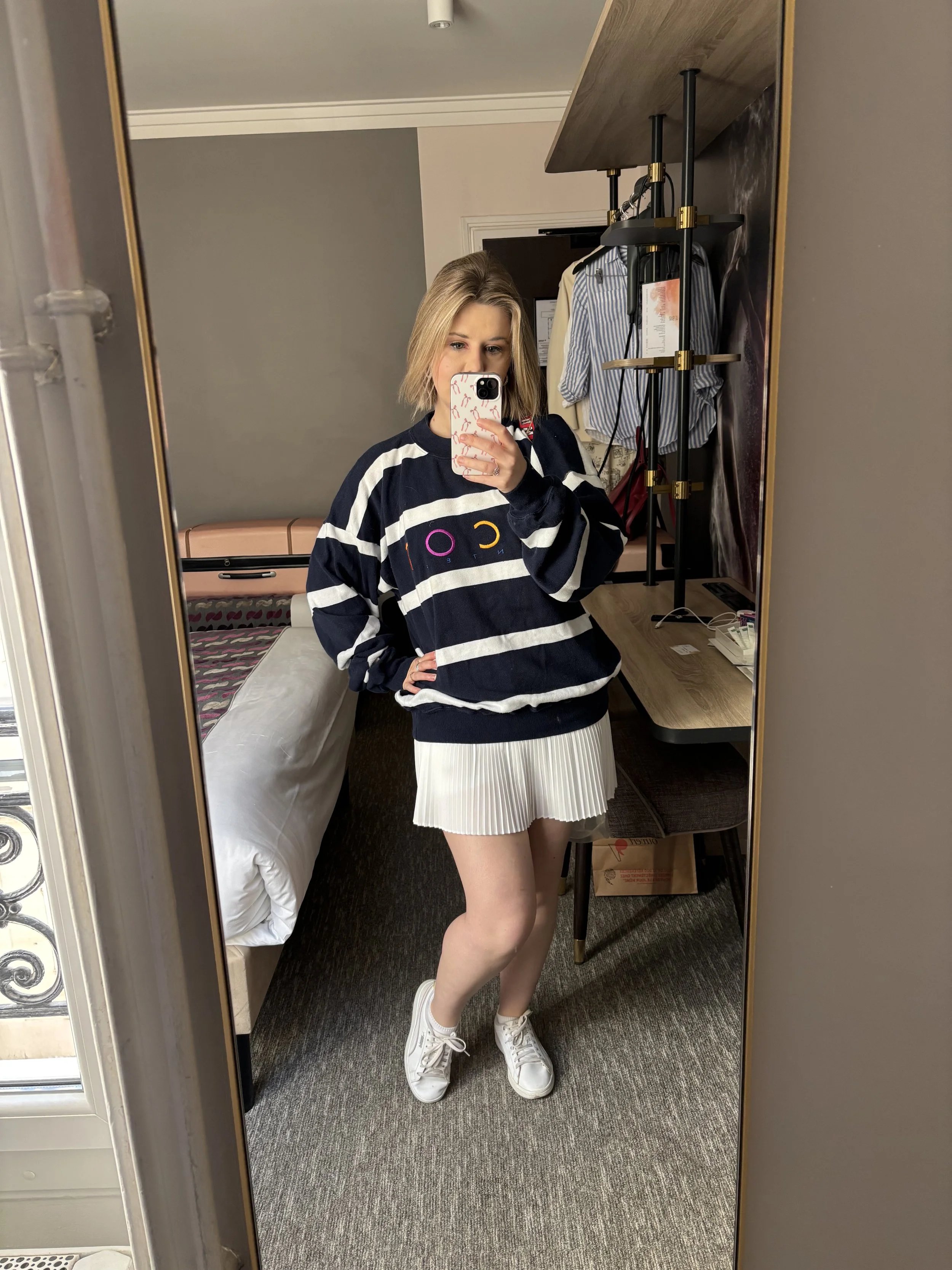 I also need a moment for the Disneyland outfit. Theme park dressing is a balance of being cute and functional, and I’m pretty happy with how this one turned out. I had just scored the sweater on Poshmark a few weeks before - it’s a United Colors of Benetton sweater with “Epcot Centre” on the front. I can only find one other like it online. It’s likely from the early days of Epcot from the United Kingdom Pavilion shop. Obviously, it was too perfect for a full day at Disneyland.